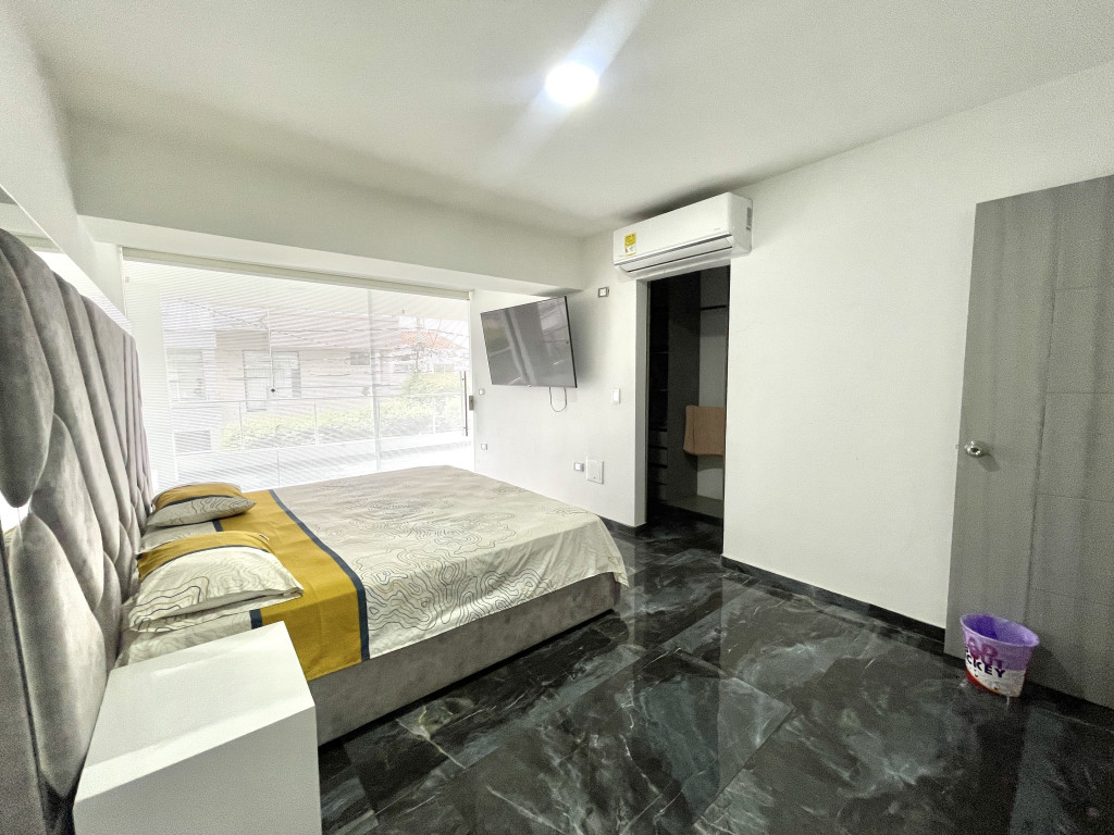 Disfruta de la comodidad y amplitud en esta hermosa casa amoblada ubicada en conjunto cerrado. Cuenta con antesala, sala de TV, comedor de 6 puestos, cocina integral equipada con nevera, estudio con escritorio ideal para oficina en casa, baño social y patio de ropas con lavadora. En el segundo nivel encontrarás 3 habitaciones: la principal con cama doble, baño privado, aire acondicionado, vestier y balcón; una habitación auxiliar con cama doble y baño privado, y otra habitación auxiliar también con cama doble. El conjunto ofrece excelentes zonas comunes como piscina, vigilancia, salón comunal y parqueadero para visitantes, brindando seguridad y bienestar para toda la familia. Además, la casa dispone de parqueadero privado para 2 vehículos y se encuentra en una ubicación estratégica sobre la Av. del Río, ideal para disfrutar de fácil acceso y cercanía a todo.